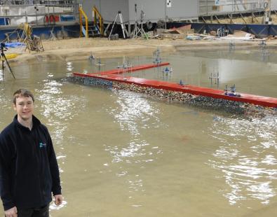 View of waves crashing on modelled breakwater