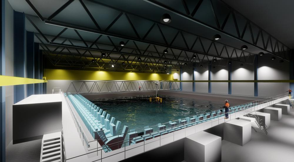 The proposed facility will be the largest of its kind in the UK, featuring a basin with a 40m x 40m x 5m deep test area equipped with multi-directional wave generation. This will allow for the testing of floating platforms with full catenary mooring spreads at scales of 1:40 and above – critical for replicating real-world ocean conditions and validating engineering performance.